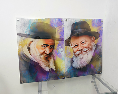 17734 – סט ציורים של הרבי מלובביץ' ורבי ישעיה מקרסטיר על קנבס או זכוכית