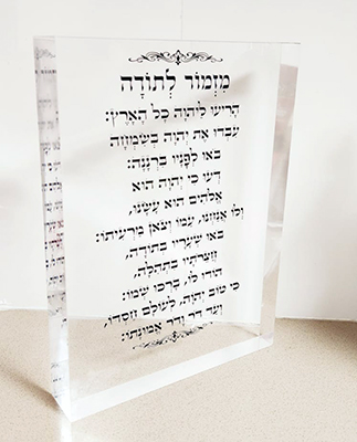 קטגוריות: הדפסה על זכוכית, כל המוצרים, מזמור לתודה, מידה רגילה - שיוך מחיר