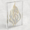 2654 – בלוק זכוכית אקרילי שקוף של האש שלי בגווני זהב