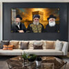 3084 – תמונה מעוצבת של רבנים שונים על רקע שחור וזהב על זכוכית או קנבס