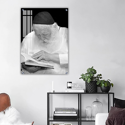 5068 – תמונה של הרב חיים קנייבסקי מתפלל בשחור לבן על קנבס או זכוכית